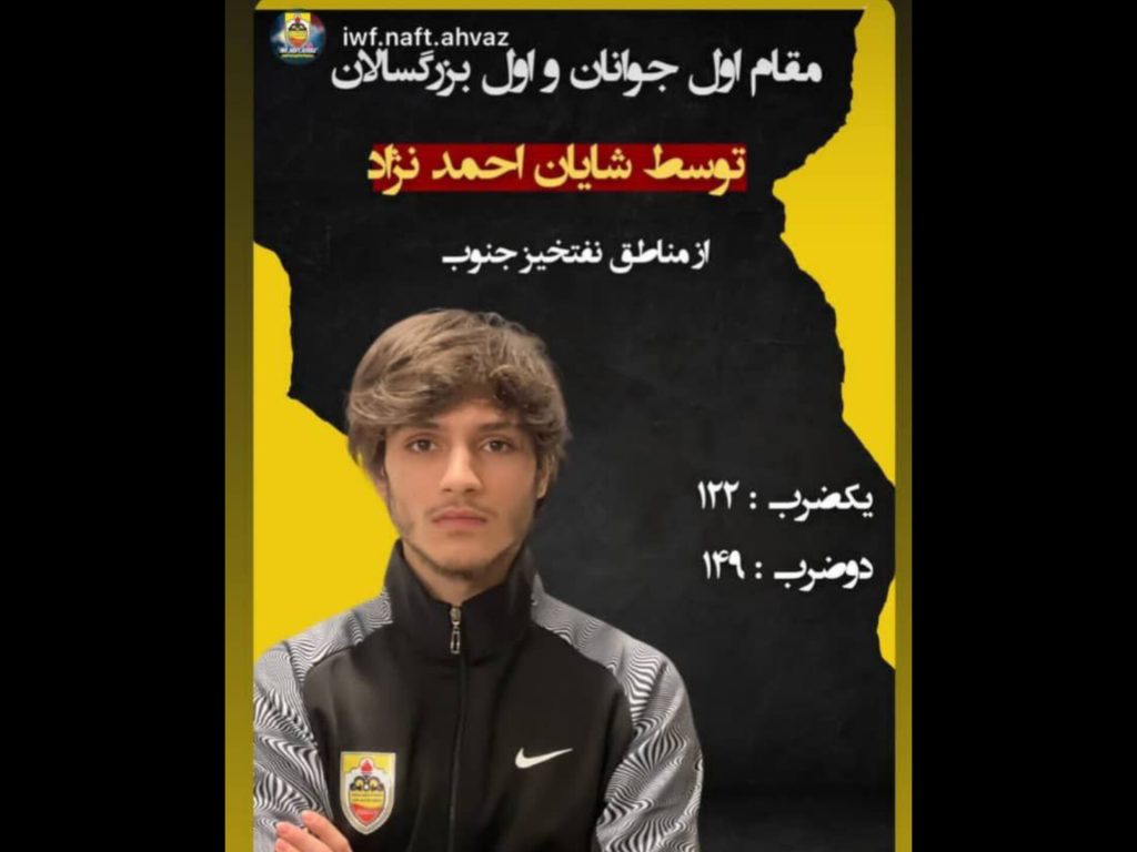 ۲-شایان احمد نژاد به عنوان ستاره مسابقات دردسته ۶۱ کیلو در یکضرب با۱۲۲ کیلو و در دو ضرب با۱۴۹کیلو و مجموع ۲۷۱ کیلو در جوانان و برگسالان به مقام قهرمانی دست یافت.