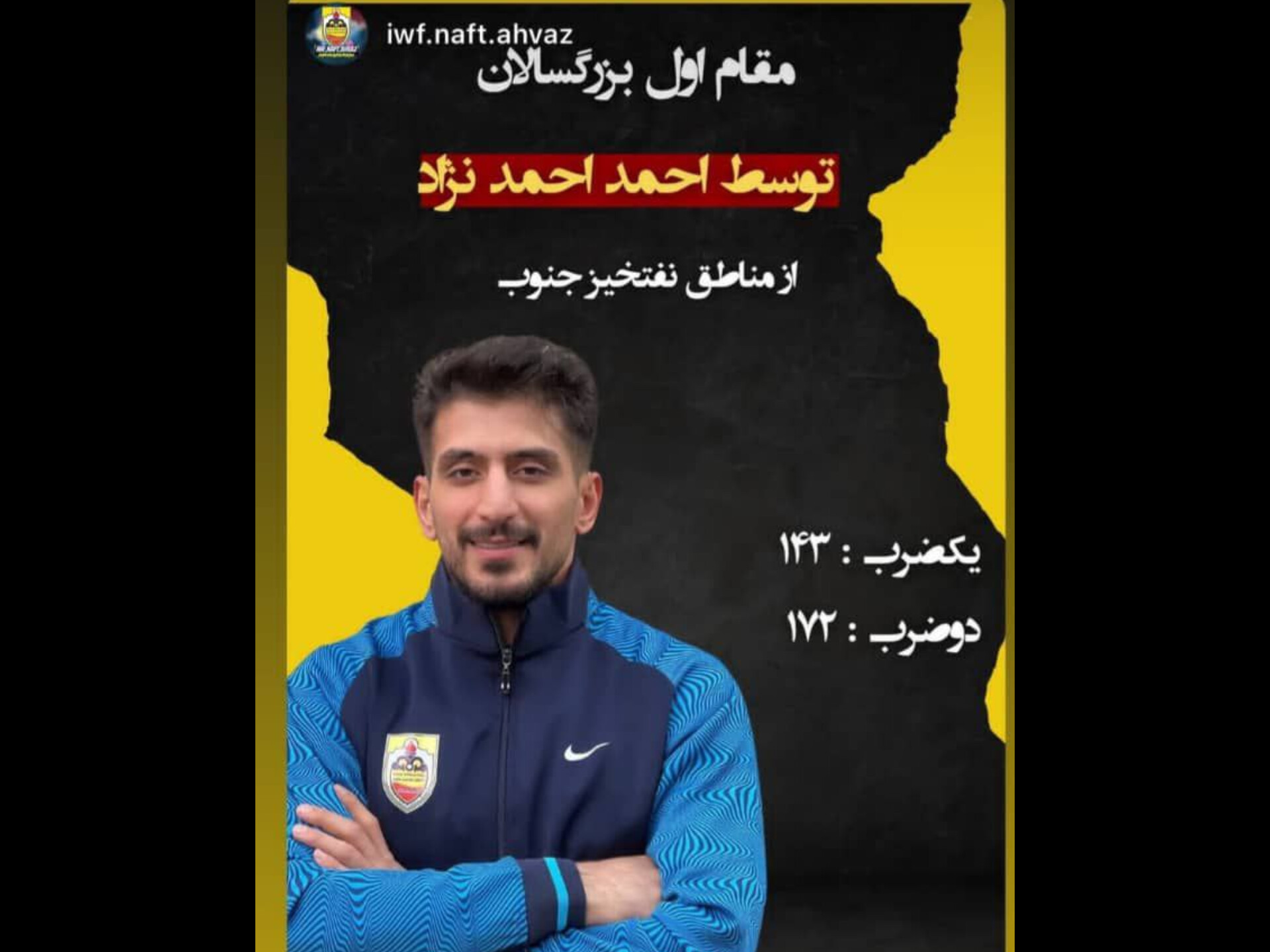 ۳-در دسته ۷۳ کیلوگرم احمد احمدنژاد در قسمت بزرگسالان با یکضرب ۱۴۳ کیلوگرم و دو ضرب ۱۷۲ کیلوگرم و مجموع ۳۱۵ کیلو به مقام قهرمانی دست یافت .