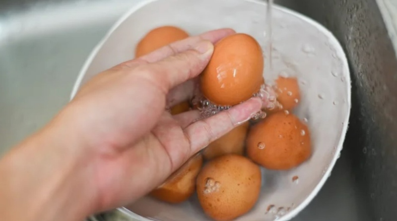 شستن تخم مرغ توصیه نمیشود زیرا لایه محافظ طبیعی پوسته را از بین میبرد و خطر ورود باکتریها را افزایش میدهد. اگر تخممرغ خیلی کثیف است، میتوانید قبل از استفاده، با پارچه تمیز و خشک به آرامی آن را تمیز کنید یا آن را با آب ولرم به سرعت و بدون خیساندن بشویید. شستن تخممرغهای کثیف و ترکدار یا خونآلود باید بلافاصله قبل از مصرف و با آب گرم انجام شود.