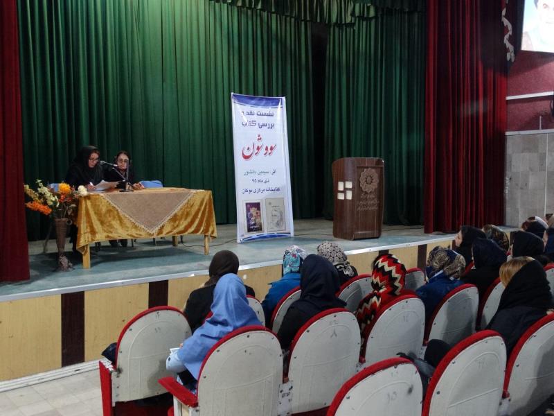 در این همایش که با حضور جمع کثیری از بانوان کتابخوان بوکانی برگزار شد، رمان “سووشون” اثر نویسندهی شهیر ایرانی “سیمین دانشور” مورد نقد و بررسی قرار گرفت.