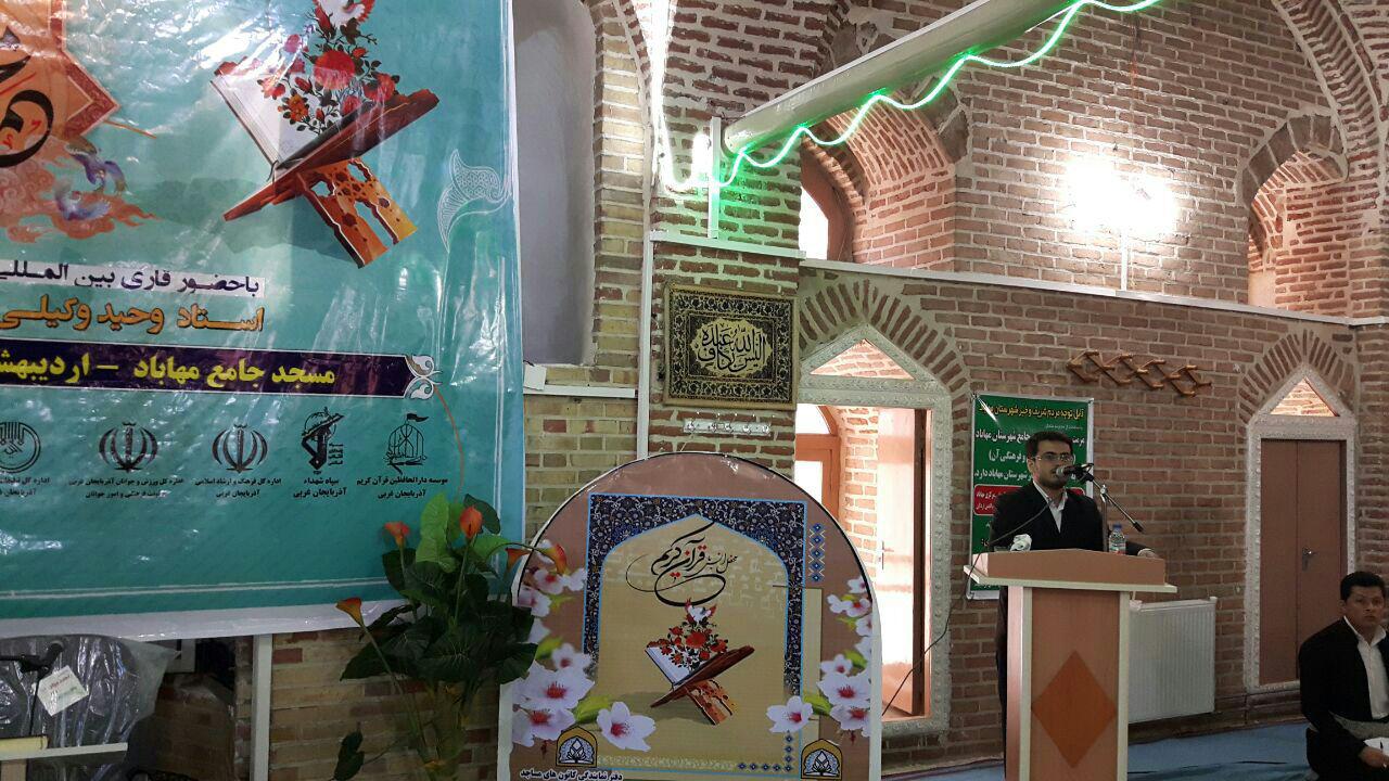 ارجمندی مسئول دفتر کانون های مساجد و رئیس هیئت قرآنی شهرستان مهاباد با اشاره به برگزاری محفل قرآنی به مناسبت معراج حضرت رسول اکرم (ص)، برگزاری مراسمات و جلسات قرآنی را یکی از مأموریت های ویژه کانون های مساجد دانست و با اشاره به برگزیده شدن کانون های مساجد به عنوان نهاد برتر قرآنی کشور در سال ۱۳۹۵، فعالیت قرآنی با پیگیری بیشتری در مساجد دنبال می شود.
